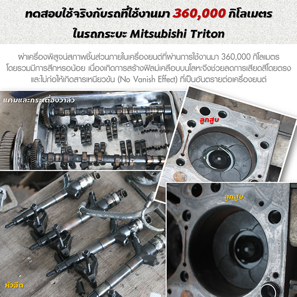 - เป็นตัวเร่ง Catalyst ให้เกิดการสร้าง Metal-Ceramic film บนผิวโลหะ ช่วยลดการเสียดสีโดยตรง เพื่อลดการสึกหรอภายในเครื่องยนต์